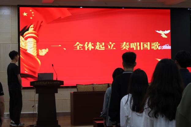 韩煦同志在毕业生欢送会的开始,宣布全体起立,奏唱国歌,紧接着支部为毕业生分发蛋糕,各位同志相互合影,记录美好时刻。令阳书记总结讲话,肯定过去,憧憬未来,向毕业生表达深切祝福。
