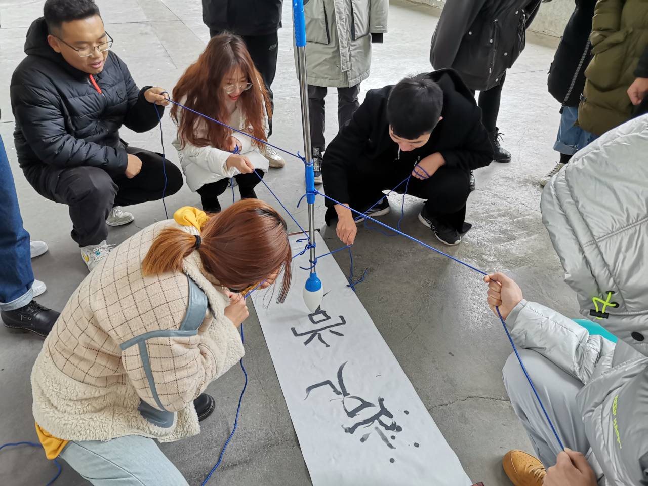 素质拓展活动包括小组成员信息速记、一块五、毛笔牵绳写字、党内知识竞答、抓鱼五个部分。大家在游戏中熟悉彼此,比赛中学习知识,合作中领悟团结。毛笔牵绳写字环节中,大家选取了“党”字进行比拼,各小组在规定时间内合力书写,最后评选出最优组进行奖励。写好“党”字,也意味在生活中更要提高党性,发挥先锋模范作用,同时凸显出各位党员同志的爱党精神。