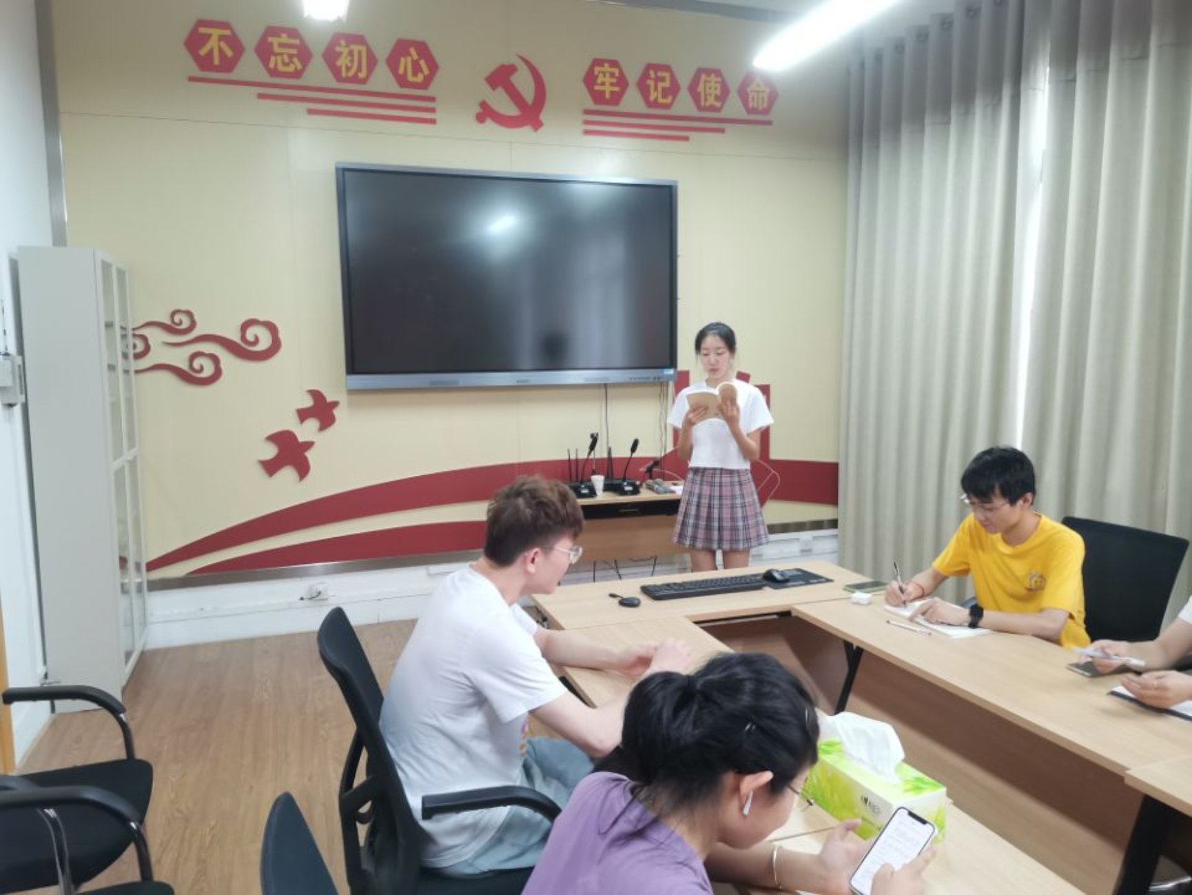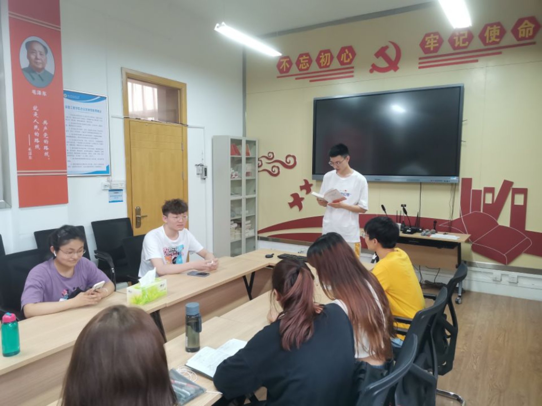 401会议室开展读书会主题党日活动,参会同志结合自身学习体会进行讨论。