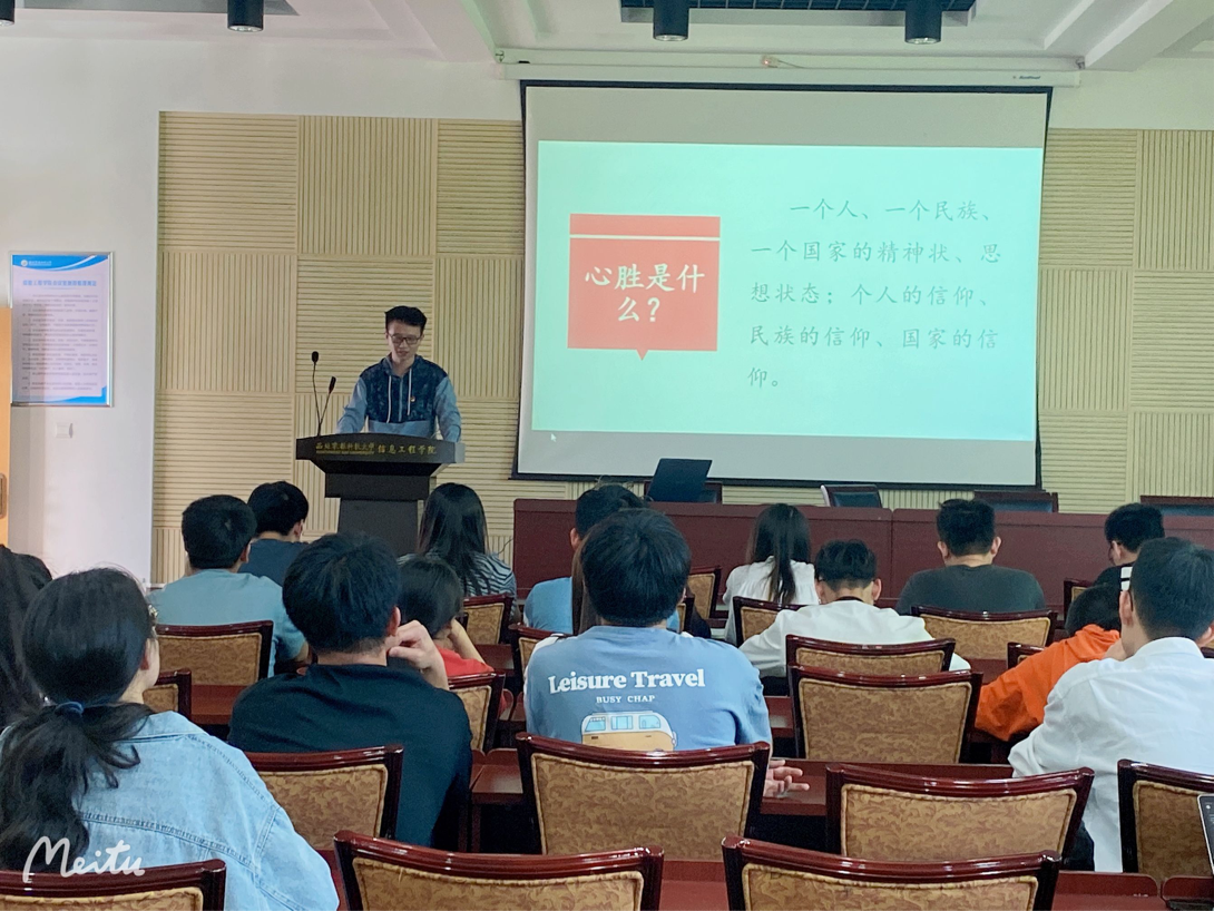 刘思聪同志在分享《心胜》时,谈到心胜是什么的问题时,他说:心胜是一个人、一个民族、一个国家的精神状态和思想状态:个人的信仰、民族的信仰、国家的信仰。围绕这一个问题,他通过列举朝鲜战争、越南战争等例子,利用生动活泼的语言为台下的同志很好的解释清楚心胜的意义。