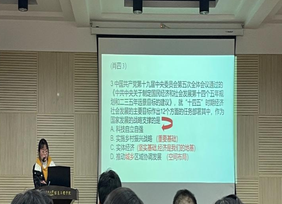 学以致用,理论问答**研。为了深入学习十九届五中全会精神并且助力支部中部分同志参加即将到来的研究生入学考试,本次生活会设置了考研题目问答环节。10道结合会议精神的考研预测题让备考的同志们兴致高涨。他们陷入思考然后进行抢答,回答结束后再进行讲解,不但巩固加深其他同志们对知识的理解,而且让备考的同志们在组织生活会中有更多的收获。