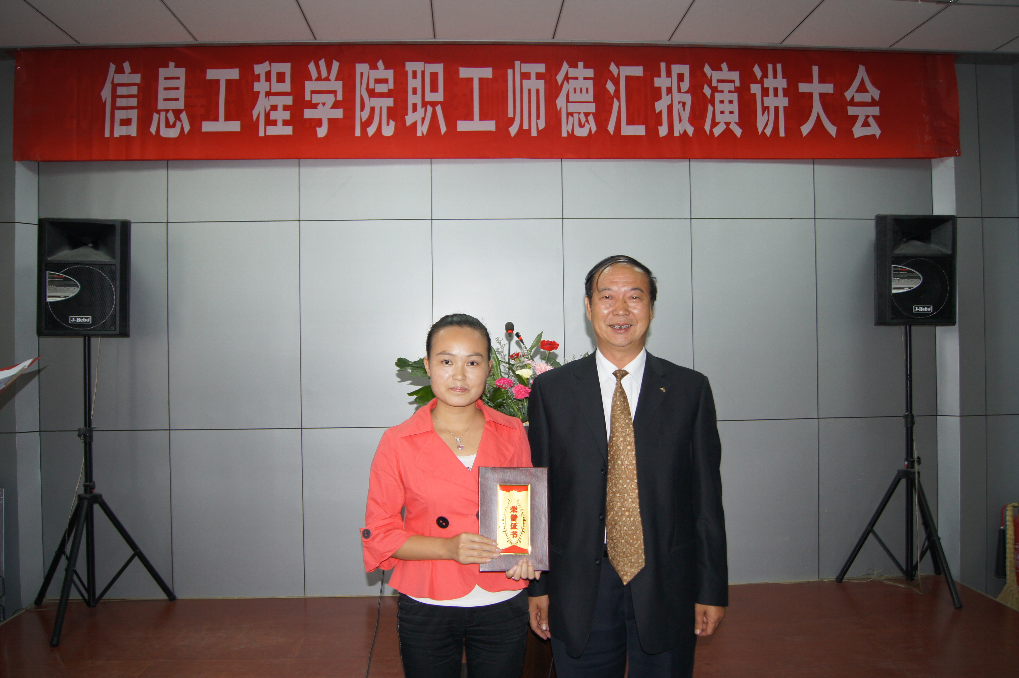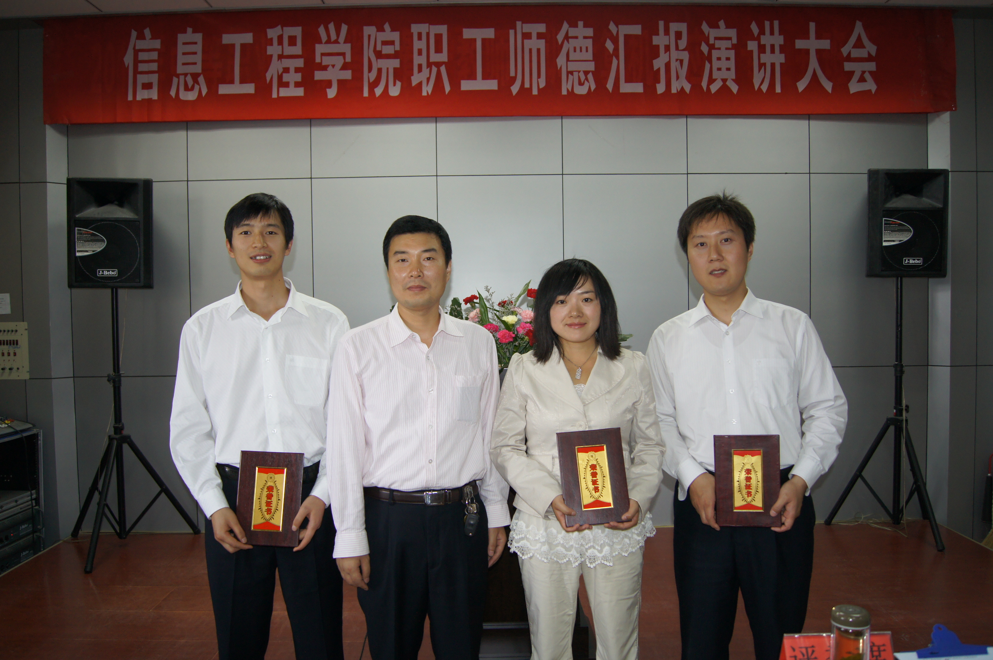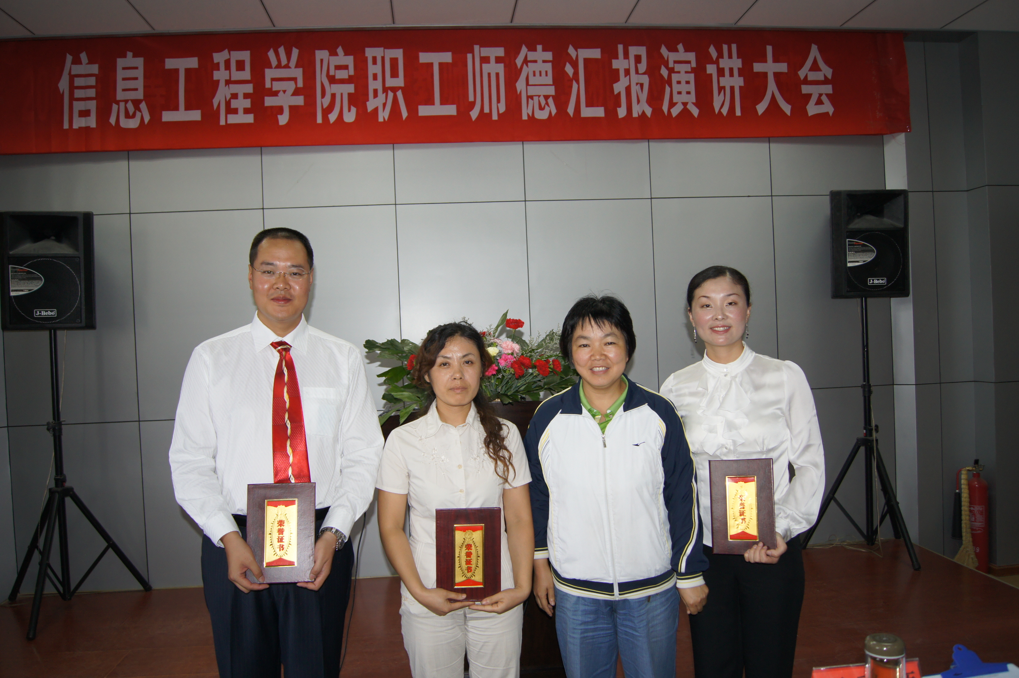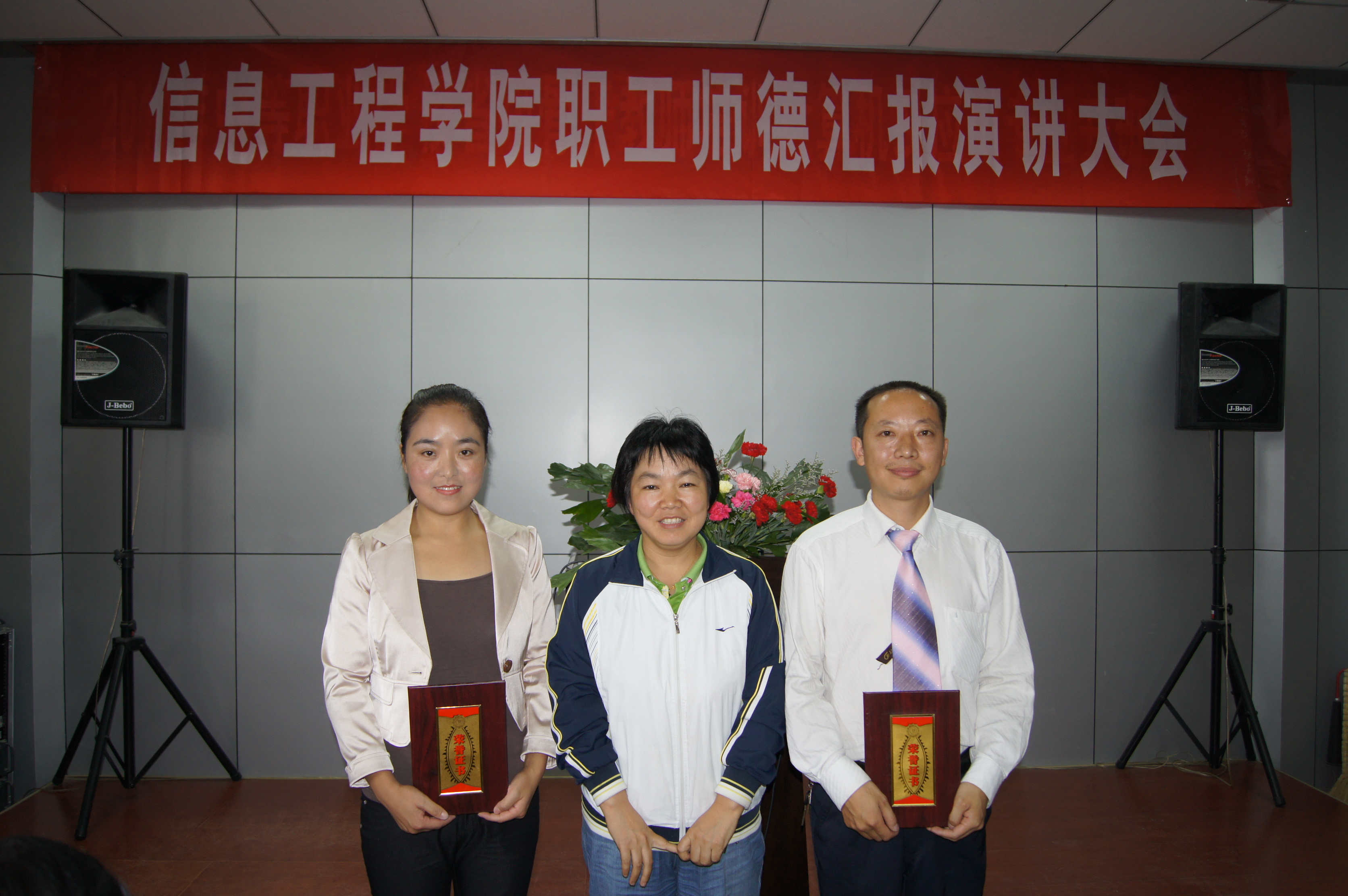 来自全院教师队伍、管理队伍、实验技术队伍的9名选手参加了汇报演讲。学高为师、身正为范、以行立教、以德立身,9名教师按抽签顺序依次登场,《责任铸师魂,爱心扬师风》、《用心与学生一起成长》、《坚守一方净土 用爱写好师德》、《我要当好一名老师》……,选手们激情洋溢的演说,饱含深情的话语,生动感人的事迹,道出的是信息教工的平凡,折射出的是他们爱岗敬业、为人师表、默默奉献的不平凡。经过各位选手激烈的角逐和各位评委的认真打分,来自计算机基础教学部的宋荣杰老师获得本次汇报演讲的一等奖,信息系统系杨丽丽老师和计算机控制系张志勇老师获得二等奖,软件工程系的晁晓菲老师、电子商务系的杨会君老师和计算机科学系的蔡骋老师获得三等奖,辅导员安中立老师、实验室霍迎秋老师和基础教学部的胡秋霞老师获得优秀奖。