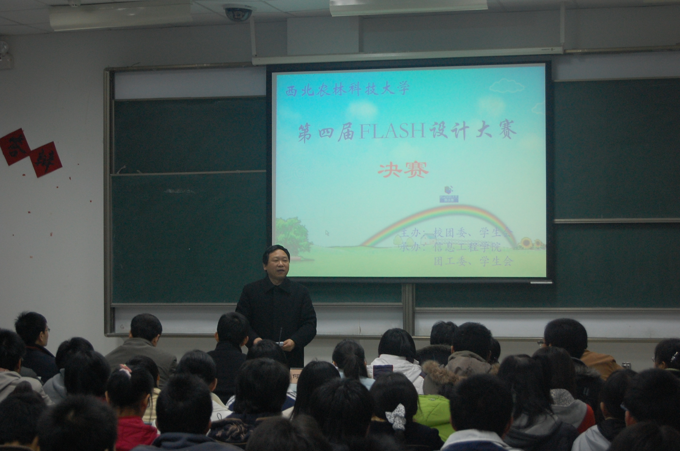 经过评委的认真评选,赫明洋等同学的《幸福的距离》获得一等奖,王学强等同学的《海阔天空》、徐磊等同学的《珊瑚海》获得二等奖,宋伟等同学的《翱翔的小鸟》,李翔宇等同学的《白蛇传?水漫金山》,郑鹏程等同学的《Kiss Kiss Pig Baby》获得三等奖。何东健教授在对作品点评时对本届FLASH设计大赛给与了高度评价,他说作品反映了同学们对生活的思考和理解,反映了对美的追求和向往,技术应用较成熟,作品整体质量比前几届有较大的提高。