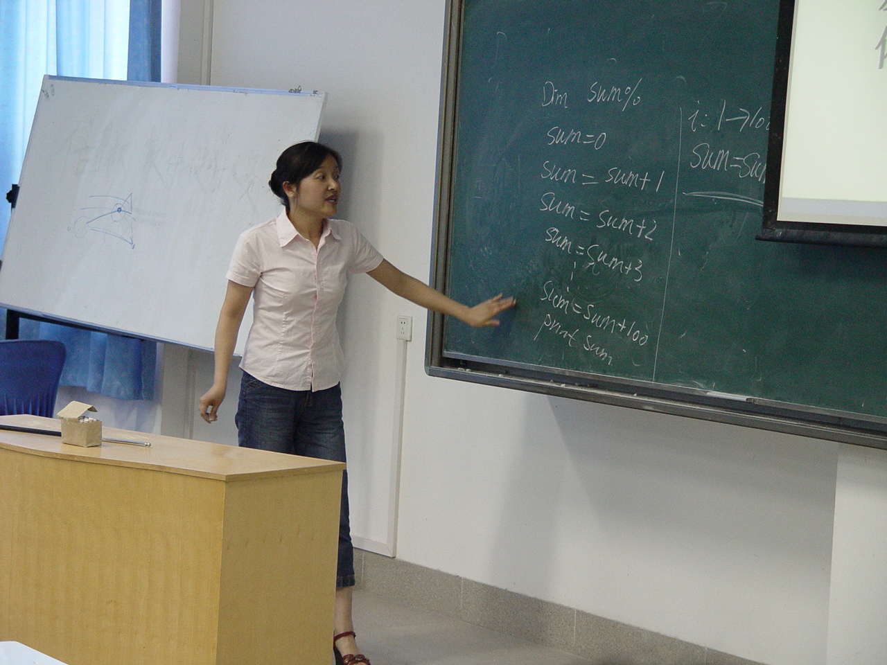 青年教师李梅正在讲课
