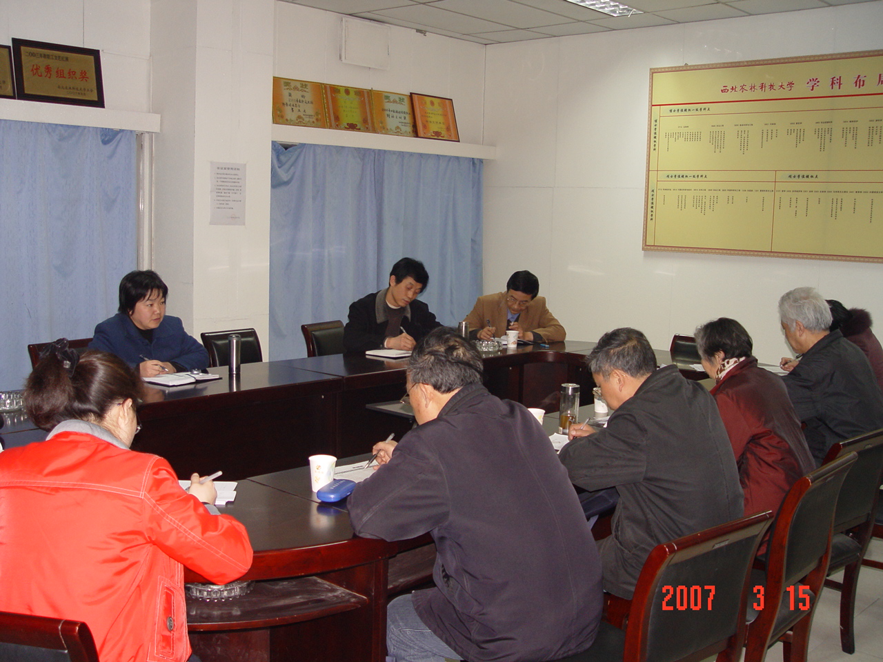 3月15日下午,在ai换脸明星 会议室召开了开学初教学督导组座谈会。会议由李书琴副院长主持,参会人员有吴竞爽、王乃信、张勤、黄道君、李长河等五位督导组老师,院领导、教学管理人员也参加了会议。