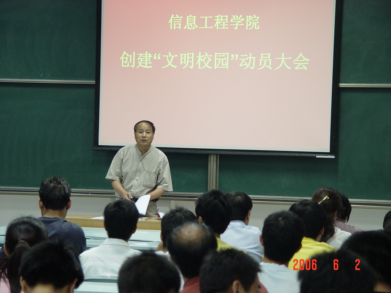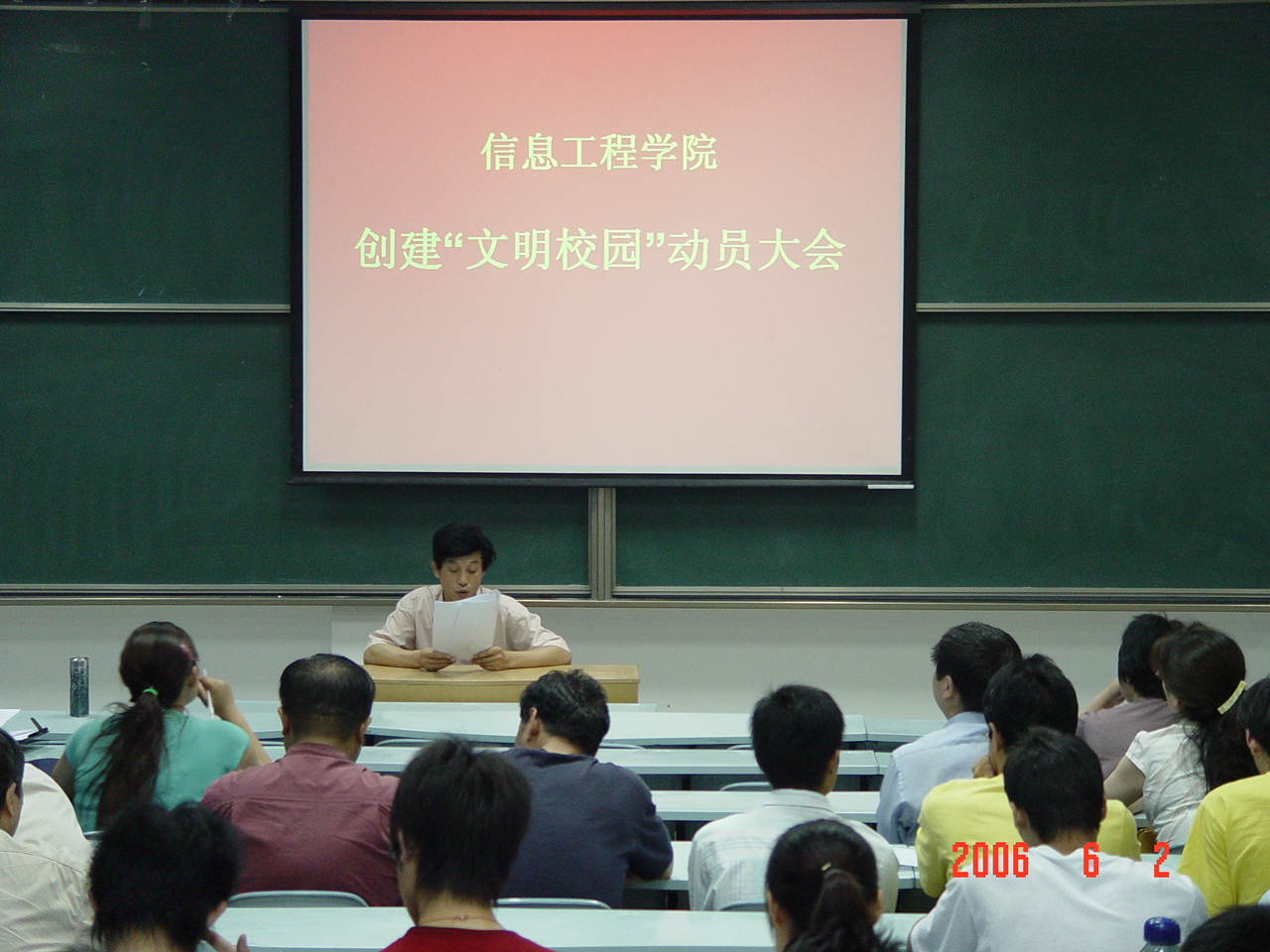2006年6月2日下午,ai换脸明星 召开创建“文明校园”动员大会,全院教工及学生干部150多人参加了会议。