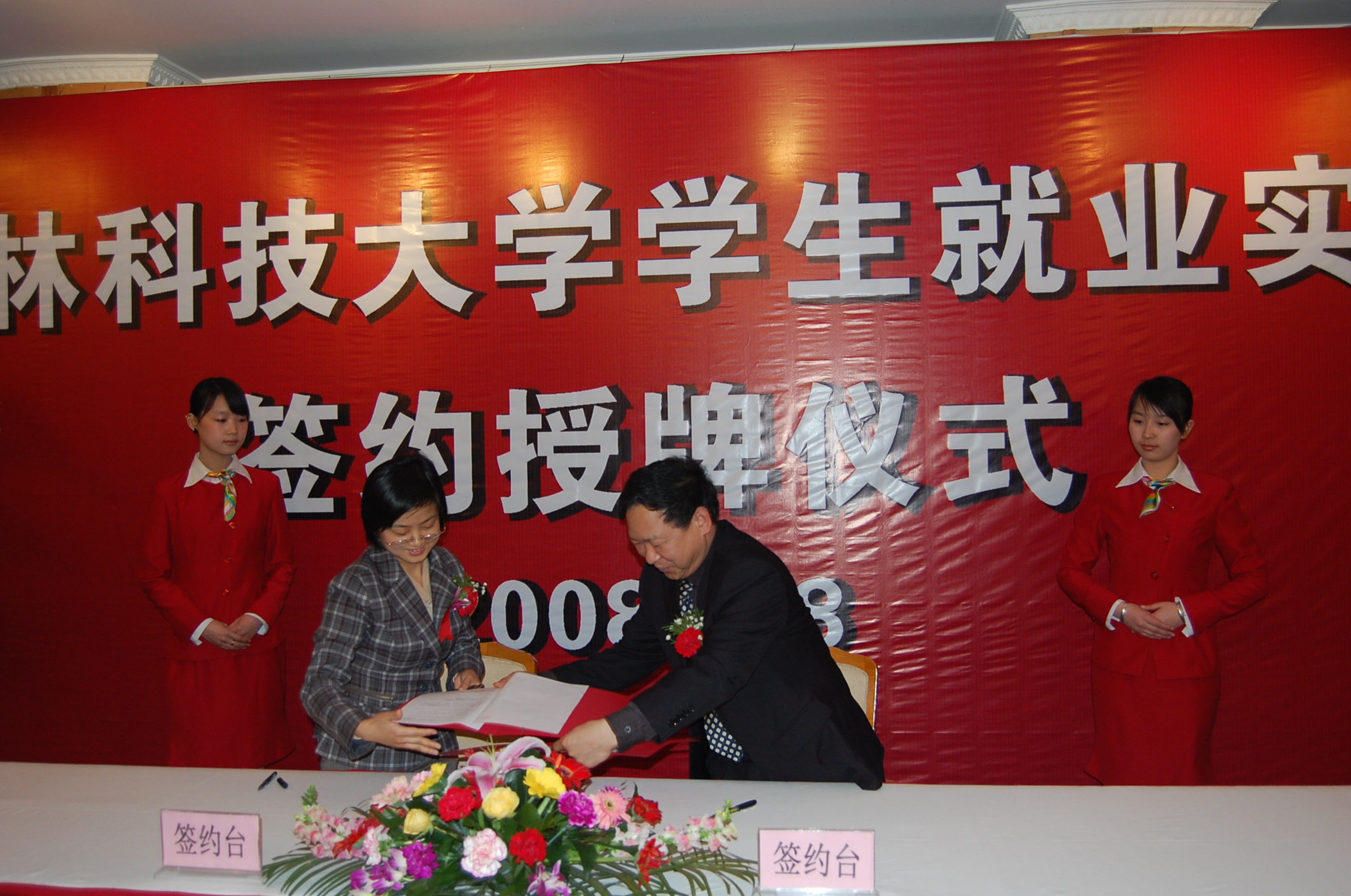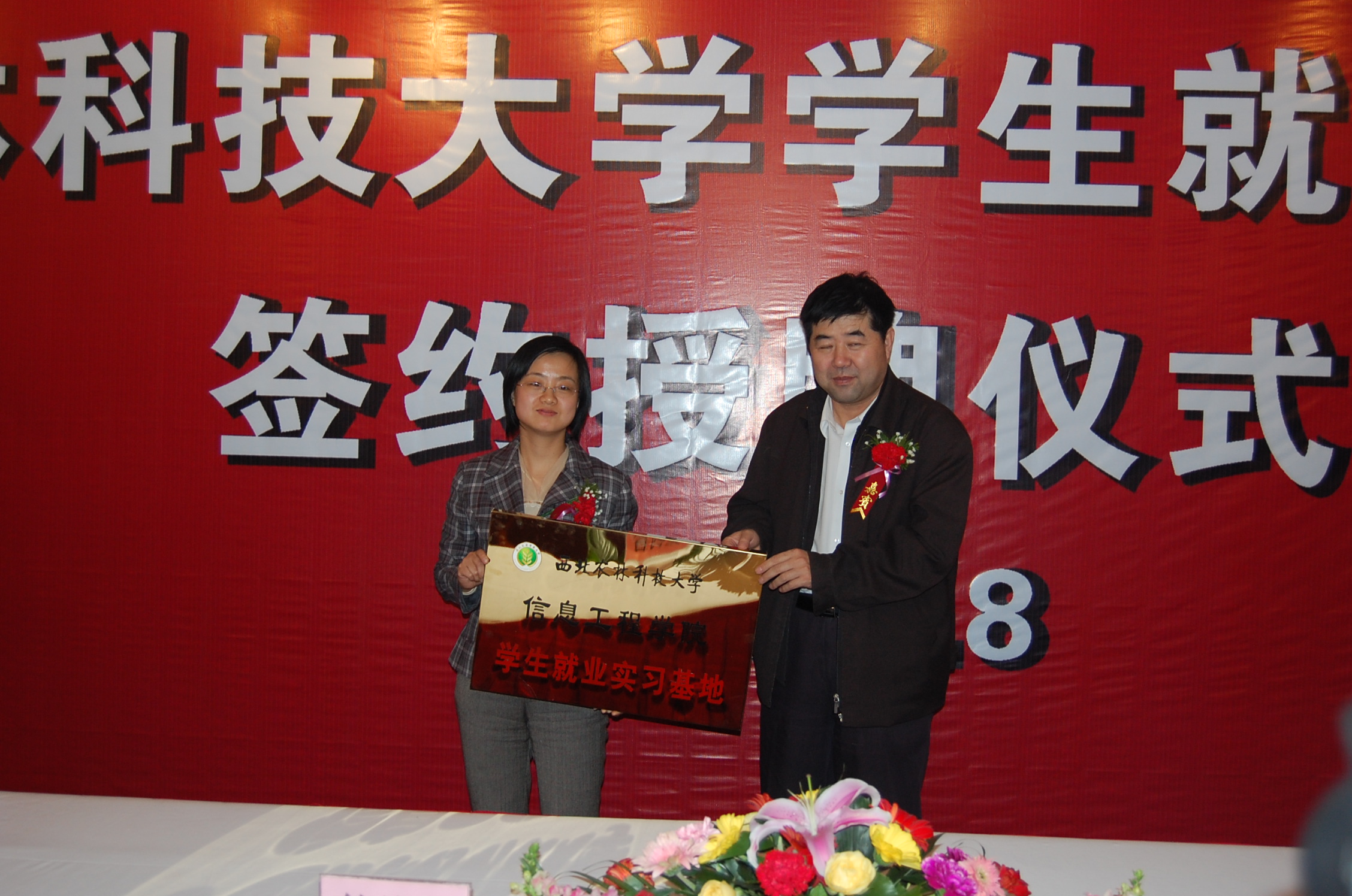 首先院长何东健教授和北京神洲数码融信软件有限公司人事部经理折沂女士签定了实习基地协议。校党委副书记、副校长王革向北京神洲数码融信软件有限公司授牌。