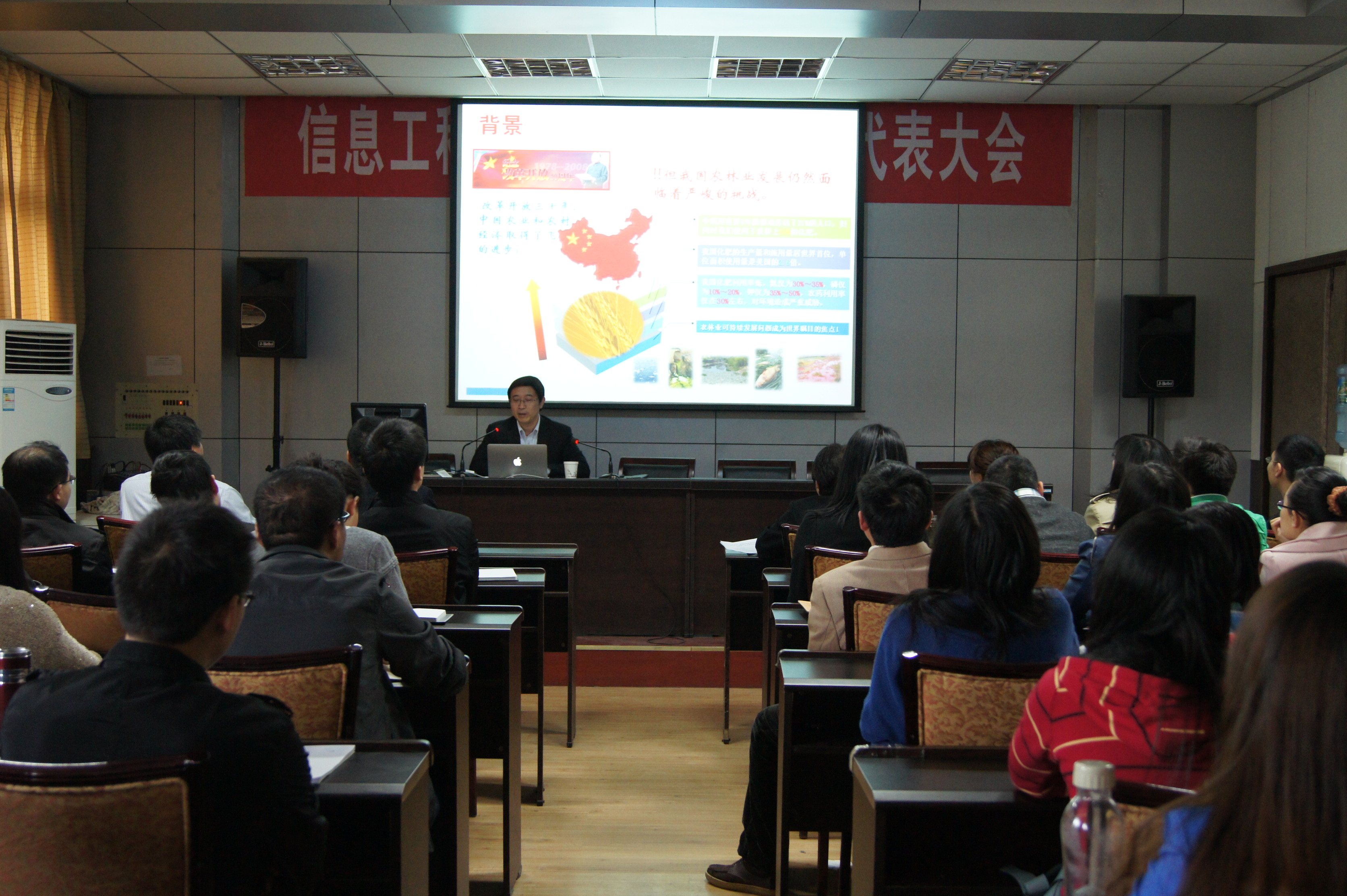 报告会上何勇教授详细阐述了基于3S技术的数字农业及现代农业装备、农业物联网技术,介绍了美国、日本等发达国家的智能农业机械发展现状,并就国内农业信息化发展背景、前景及其在国内外的不同发展状况进行了阐述,提出农业可持续发展是时代的选择,而农业要实现可持续发展就必须先实现农业信息化。何勇教授还在报告中为广大师生展示了农业信息化多方面的应用实例。最后介绍了农业信息化项目申请和他本人科研团队目前项目的进展情况,