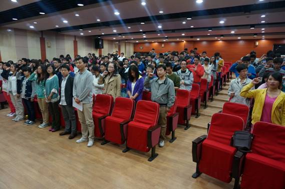 学生会主席李东辉同学带领参会学生进行集体宣誓,庄严表明要严格要求自己、提高个人修养、勤奋学习、热爱集体、助人为乐、文明礼貌、德智体美全面发展。
