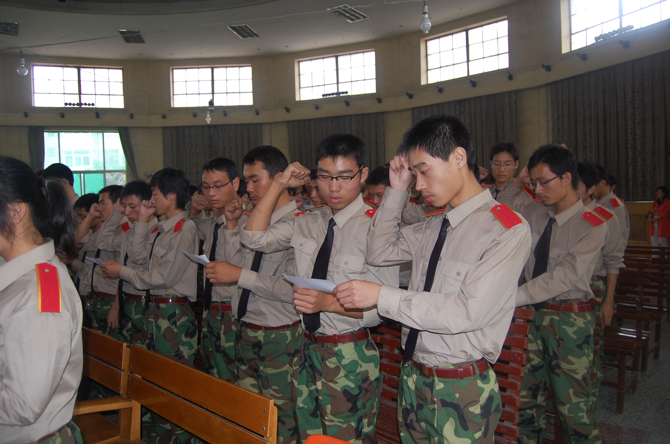 领导和老师的见证下,举起右拳,庄严宣誓,承诺要热爱祖国、崇尚科学;传承“诚、朴、勇、毅”的校训;要遵纪守法、积极上进;要尊师爱校、关心集体;要团结友爱、自立自强;要明理诚信、文明修身;要珍惜时光、刻苦学习、永不掉队。要德智体美全面发展,努力成为德才兼备的合格人才。