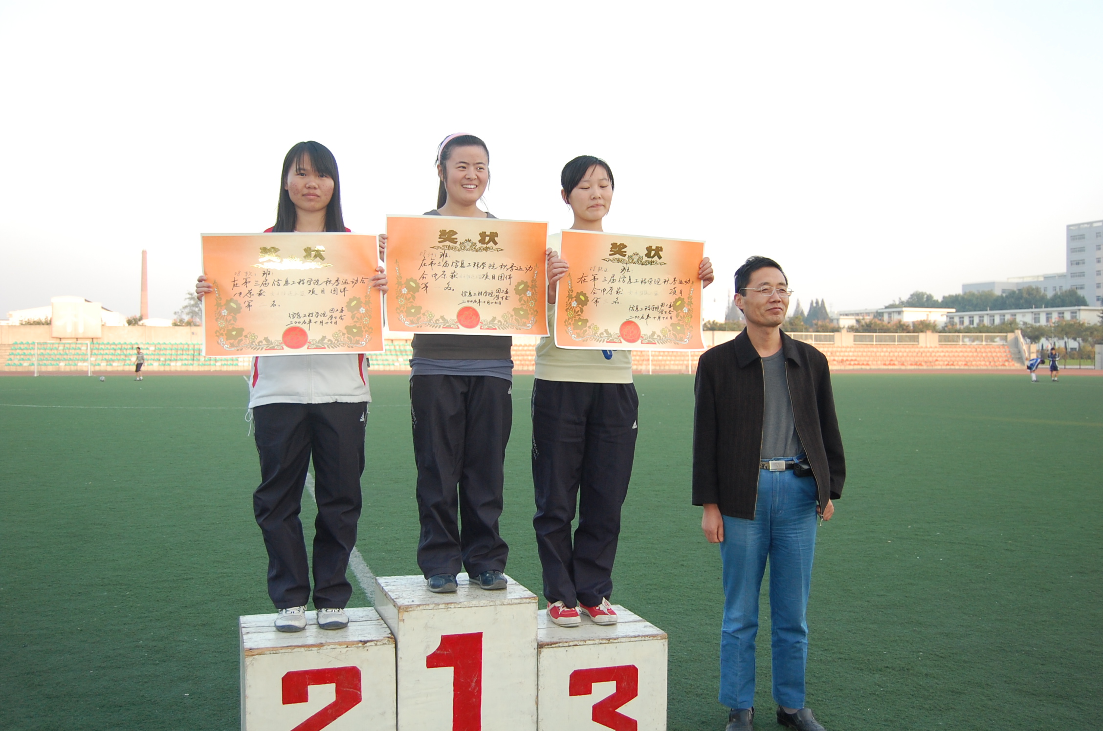 下午5点,运动会在5*60接力赛中落下帷幕。本届运动会上,运动员们取得了十分优异的成绩,计算机081班,信管083班和信管082班分别获得团体前三名,信管091班和软件093获得精神文明奖。