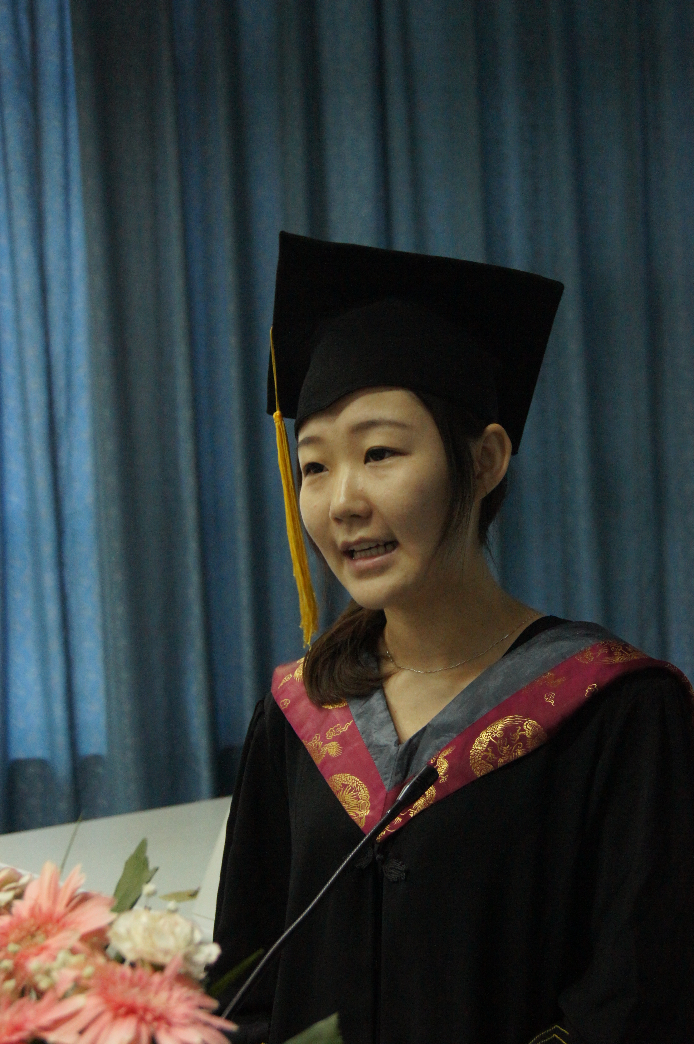 教师代表徐杨副教授、毕业生代表梦娇分别作了发言。他们都用真诚质朴的语言,为在场的毕业生致以真诚的祝福,他们的发言深深的感染了在场的每一位毕业生。