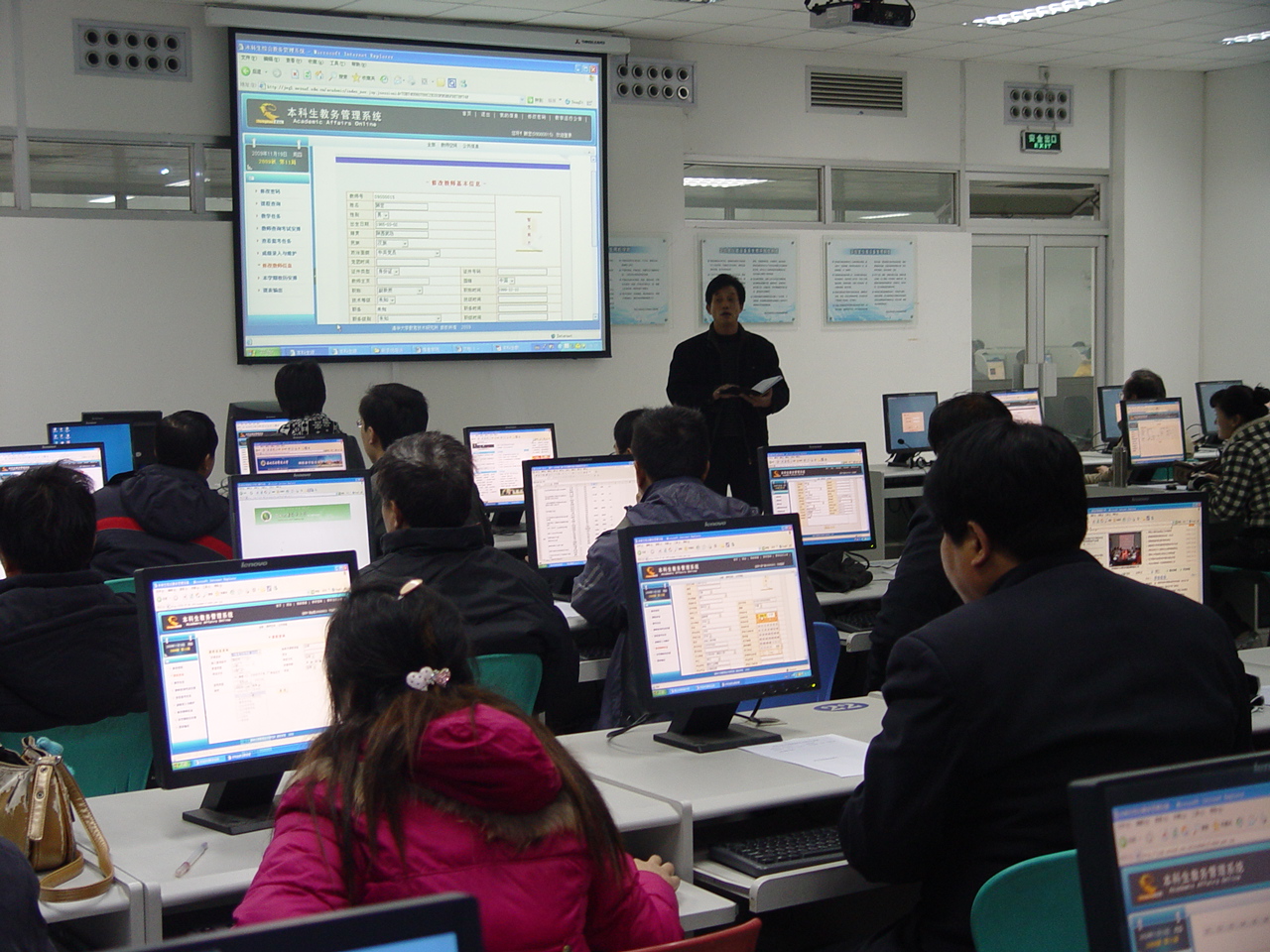 于2009年11月19日在计算机教学实验中心一层南机房举行了培训会,对全院教师使用本科生教育管理信息平台进行了培训。