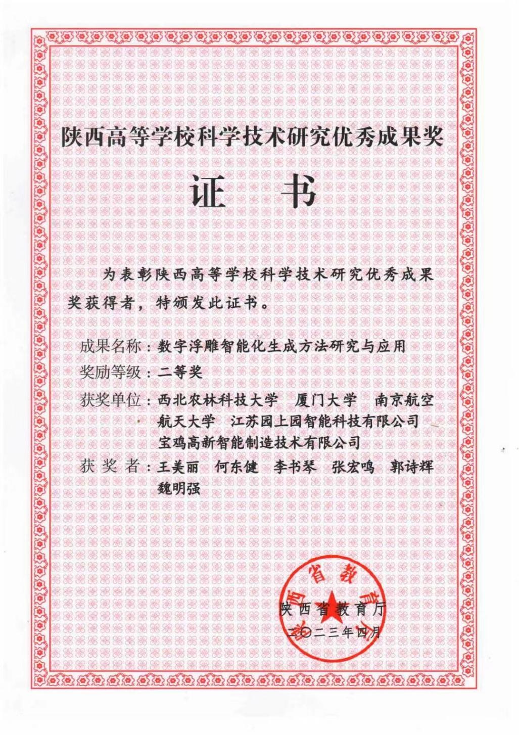 王美丽教授主持完成的《数字浮雕智能化生成方法研究与应用》荣获陕西高等ai换脸明星