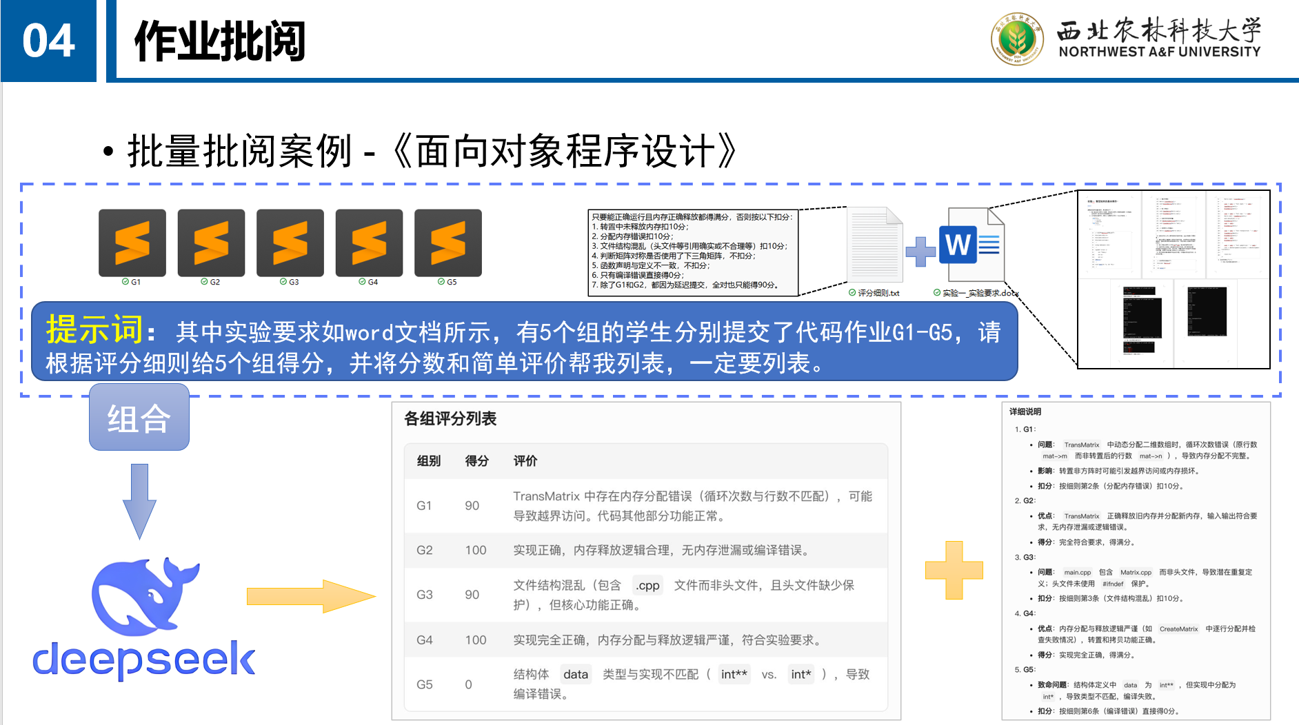 试卷的设计、评阅与分析是教学中的重要环节,依据试卷内容及成绩的分析可从教师角度评估本轮教学的效果,结合大模型分析可生成教师试卷分析报告。主观作业评阅,依托大模型的语义分析能力,设定评分标准实现自动批阅。