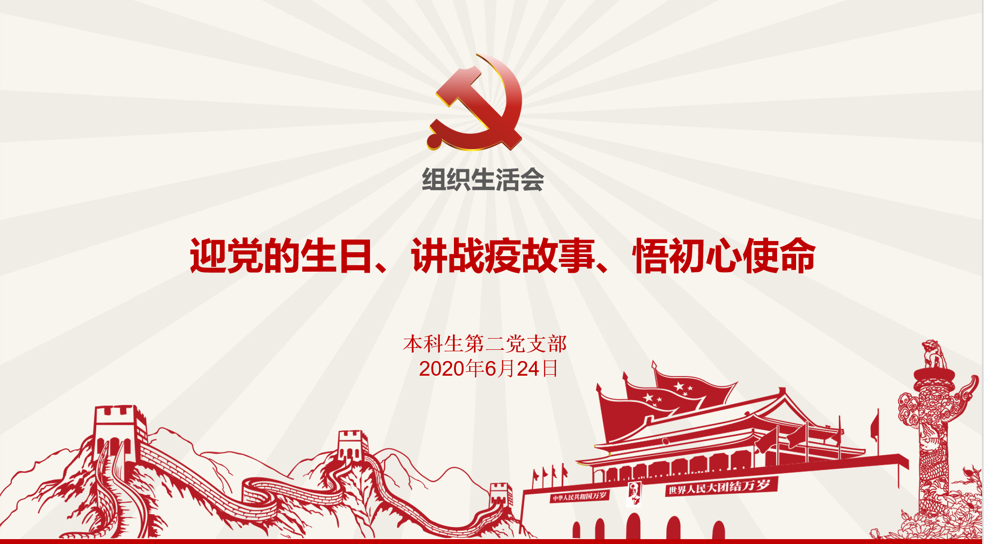 为了在常态化疫情防控工作中继续引导广大学生党员强化服务意识,讲好战疫故事,学习榜样力量,敢于担当作为,切实发挥先锋模范作用,6月24日上午,ai换脸明星 本科生第二党支部通过“腾讯会议”平台开展了“迎接党的生日、讲战疫故事、悟初心使命”专题组织生活会,支部书记倪玲同志主持会议,全体党员参会。