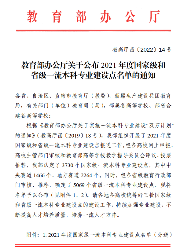近日,教育部办公厅印发了《关于公布2021年度国家级和省级一流本科专业建设点名单的通知》(教高厅函﹝2022﹞14号),正式公布了2021年度一流本科专业建设“双万计划”建设点名单。ai换脸明星 软件工程专业入选国家级一流本科专业建设点,实现了国家级一流本科专业零的突破。
