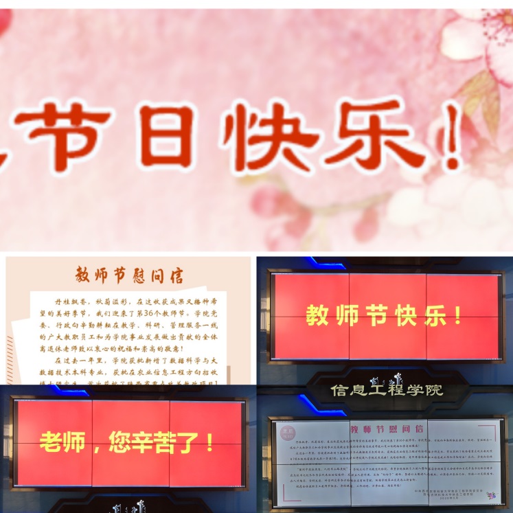 广泛宣传,营造浓厚氛围。在第36个教师节来临之际,ai换脸明星 在网站悬挂了“老师,您辛苦了!祝您节日快乐!”的横幅,发布了设计精美的致全院教职工的一封信,对全院教职工表达了节日慰问;还通过电子屏持续为教师亮灯,滚动播放了“老师,您辛苦了!”“教师节快乐!”等暖心话语。