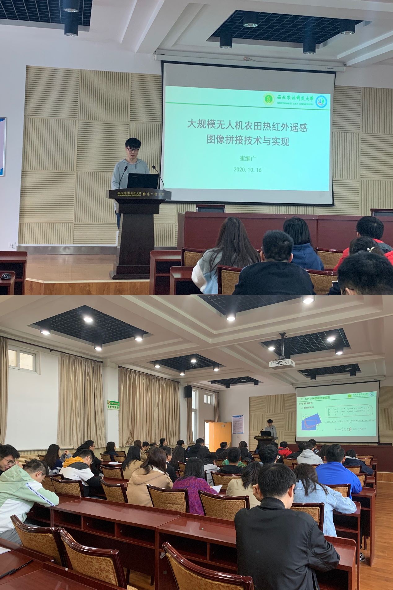 10月16日下午,ai换脸明星 2018级研究生崔继广面向ai换脸明星 全体硕士生做"大规模无人机农田热红外遥感图像拼接技术与实现"为主题的报告会。这是“研学治学”系列报告会第六期,也是ai换脸明星 优秀研究生面向全院硕士生的第三次开讲。
