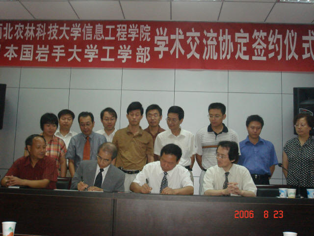 ,马场守部长代表岩手大学工学部双方进行正式签约并合影留念。协议约定如下:双方在信息科学、工学领域进行交流与合作。包括:共同研究与学术论文等的共同出版;双方就感兴趣之学术领域进行信息互换;为了推进学术研究,双方互派研究者、学生等。