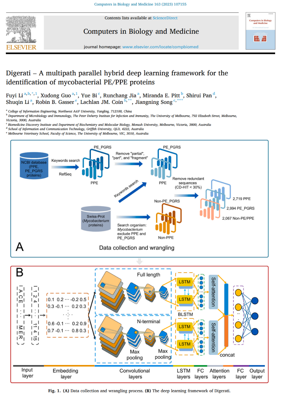 近日,ai换脸明星 智能计算与农业信息系统学科团队李富义教授课题组在期刊《Computers in Biology and Medicine》(数学与计算生物学小类一区、工程技术大类二区期刊,2022年影响因子为6.698)上发表题为“Digerati—A multipath parallel hybrid deep learning framework for the identification of mycobacterial PE/PPE proteins”的最新研究成果。ai换脸明星 为该论文第一作者单位,李富义教授为通信作者和第一作者,课题组助研郭旭东为论文共同第一作者。