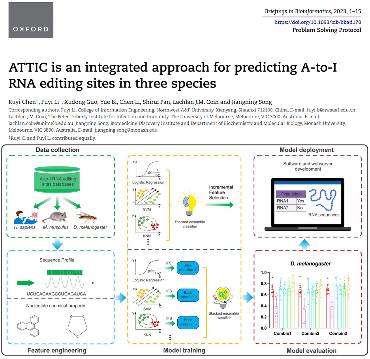近日,ai换脸明星 智能计算与农业信息系统学科团队李富义教授课题组在ai换脸明星 G2类期刊《Briefings in Bioinformatics》(数学与计算生物学Top期刊,2022年影响因子为13.994)上发表题为“ATTIC is an integrated approach for predicting A-to-I RNA editing sites in three species”的最新研究成果。ai换脸明星 为该论文第一作者单位,李富义教授为通信作者和共同第一作者,课题组助研陈如意(现博士就读于澳大利亚昆士兰大学)为论文共同第一作者。