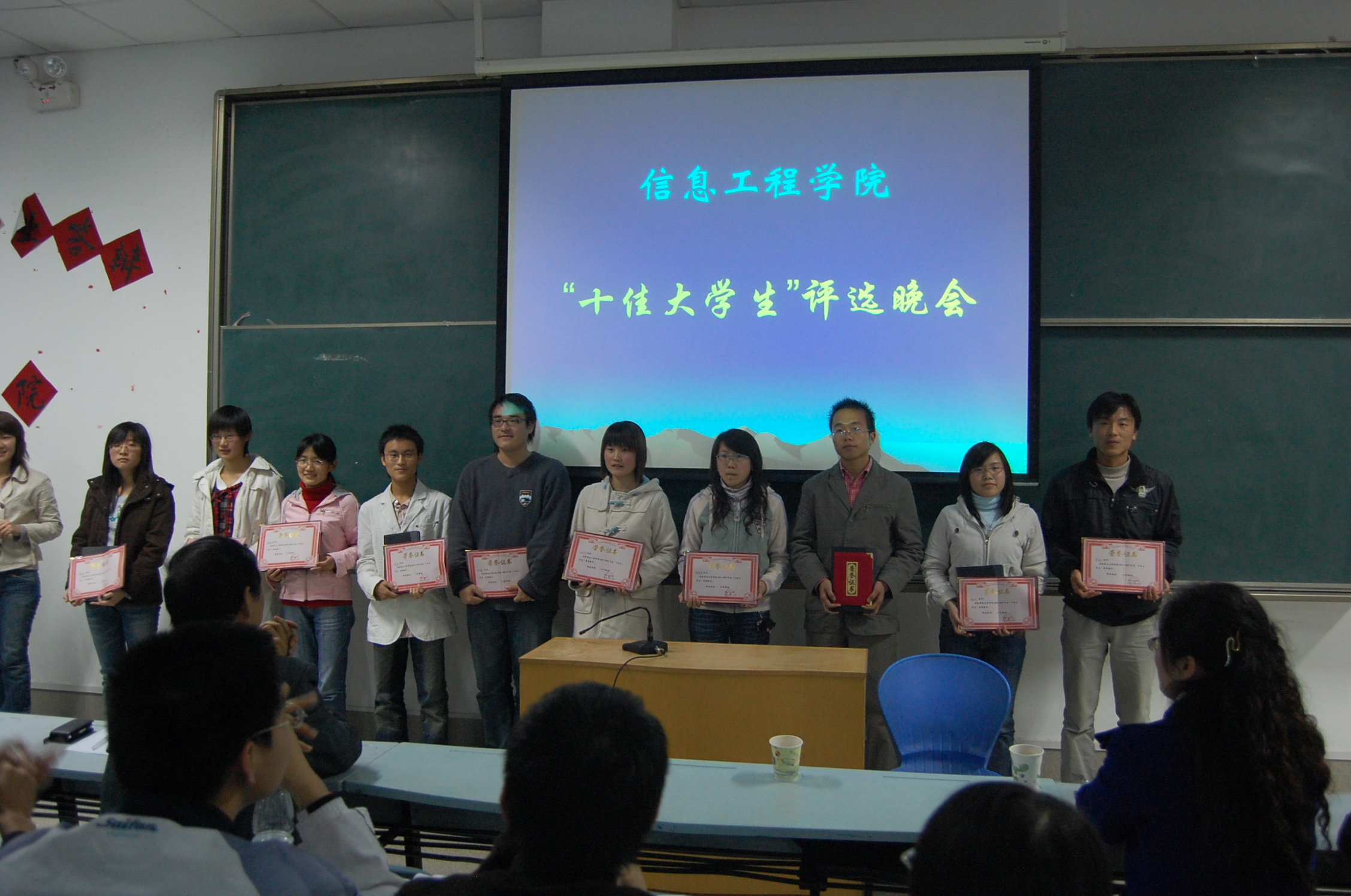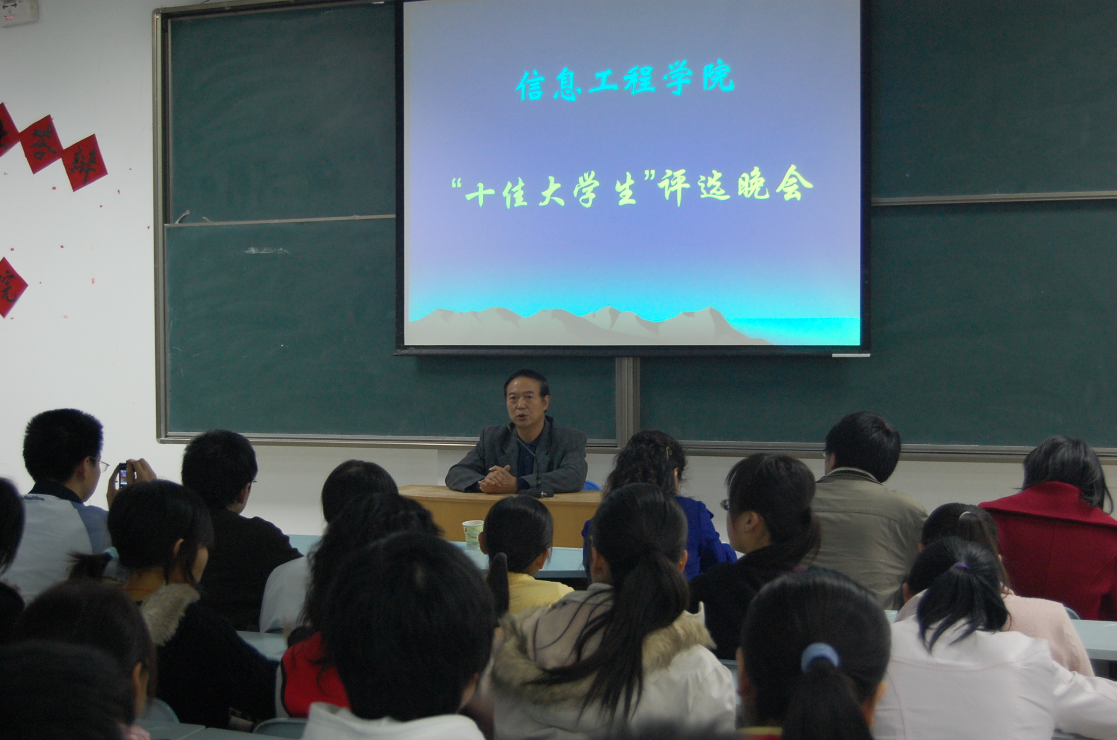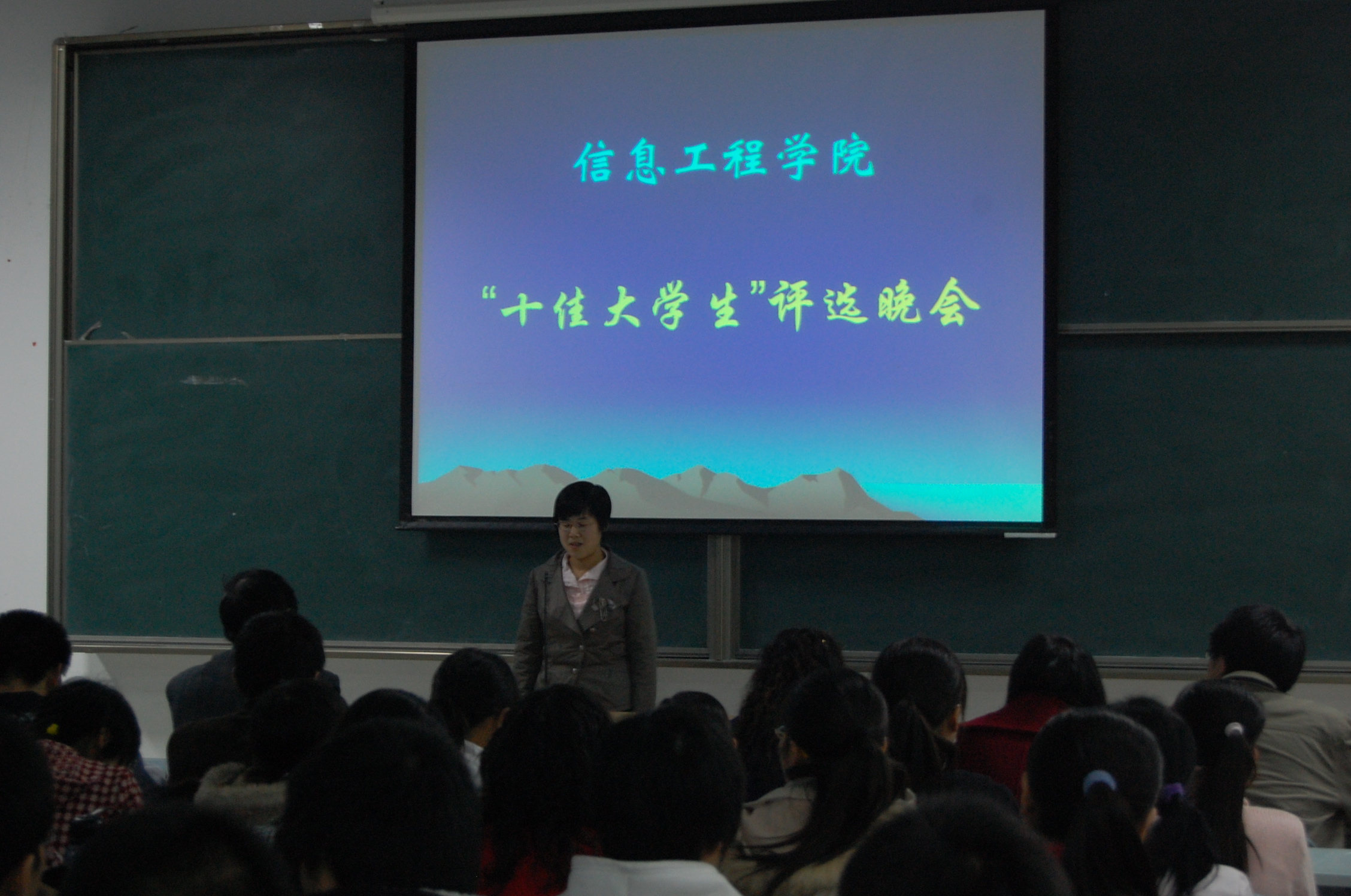 党政综合办公室何主任首先致词,他指出:此项活动的目的是以宣传促评比,以评比促学习。并提出两点希望:一是希望团工委、学生会在评选活动后加大宣传力度,进一步营造“比、学、赶、帮、超”的良好氛围;二是十佳大学生候选人应起到模范带头作用,为全院学生做出表率。接下来,15名候选人依次进行演讲和才艺表演。他(她)们分别从学习 、生活 、工作等方面谈了个人感受,精彩的演讲博得了现场同学的阵阵掌声。最后,经过105位同学和5位老师的投票选举,夺得“十佳大学生“荣誉称号的同学分别是:刘睿姝、 张欣 、秦银英 、徐磊 、王梁锋、 王志芳 、周胜男、 孟雨 、郭改 、李钊;获得提名奖的同学分别是:何淳真 、赵庆玲、 马锋 、 陈少华 、周小锋。与会领导和老师为获奖同学颁发了荣誉证书和奖品。