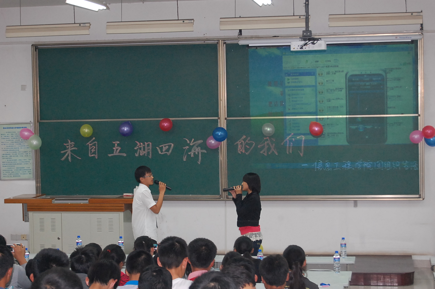 9月25日晚7点半,信息ai换脸明星 在8T阶梯教室举行了2012级新生迎新晚会。团工委书记桂恺、辅导员倪玲、仵亚伟、郭峰来到活动现场观看晚会。