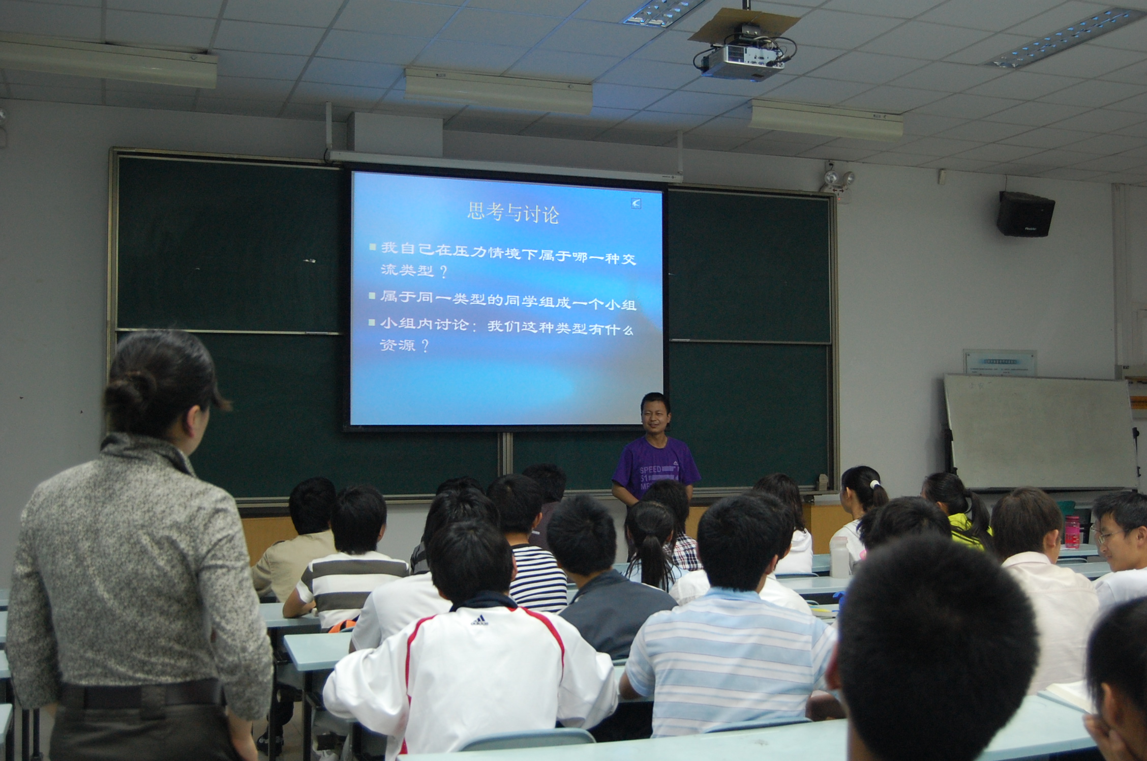 整场报告会中,周老师采取分组合作讨论的方式,一步步向同学们讲述如何用“系统的观点看待自己”。同学们积极配合,通过分组讨论,在周老师的带领下,首先对自己有一个正确的认识,然后通过“角色互换”活动分析自己的类型。经过愉悦的活动和严肃认真的讨论后,周老师向同学们给出了一些调节自己的建议。她希望同学们在看待自己时,不要孤立地看待,要系统地全面地去分析思考,在肯定自己、分析自己的基础上对自己进行调节提高。