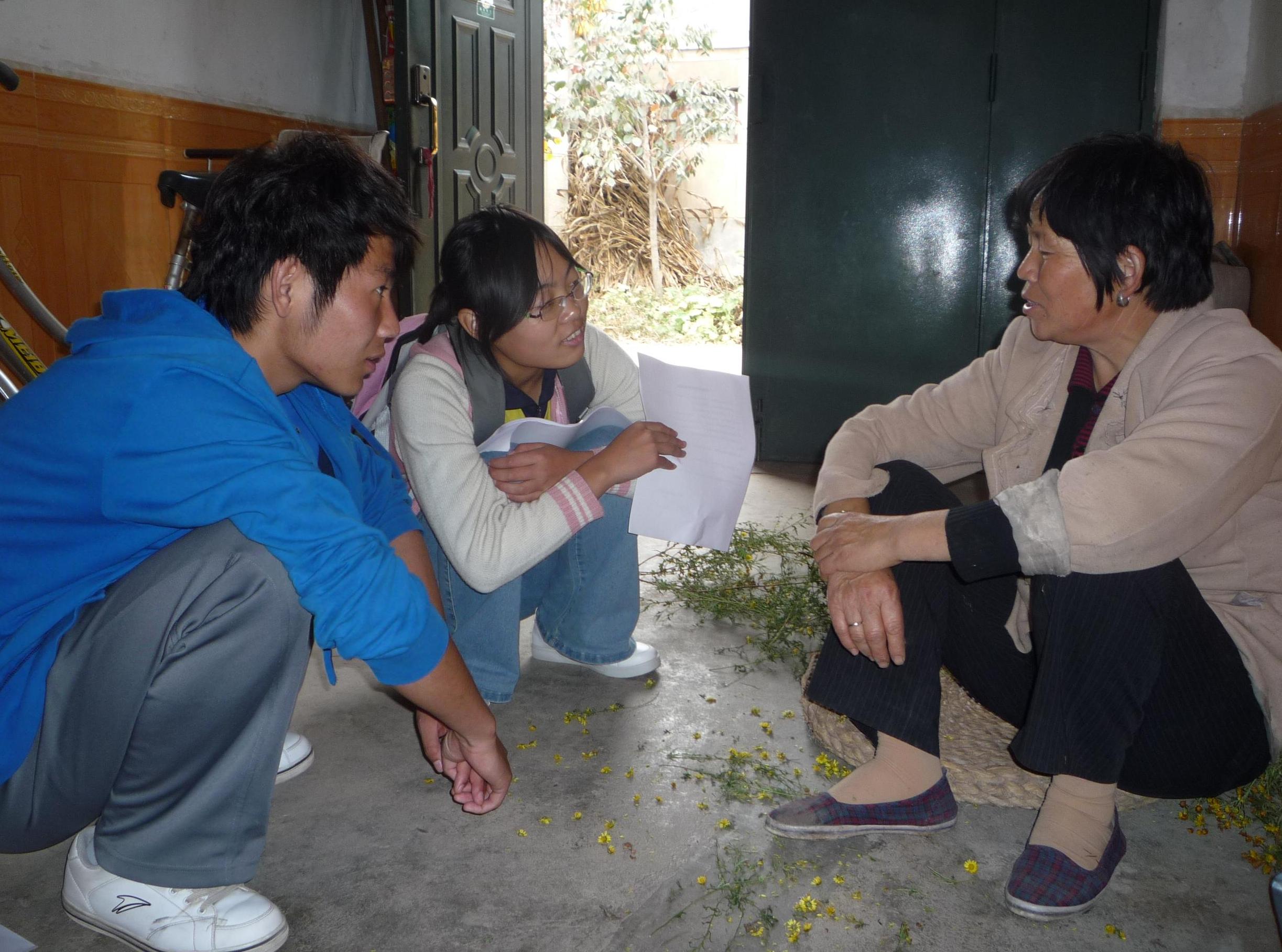 同学前往陈家沟了解当地村民情况,向他们宣传第十六届农高会,并告诉他们如何防治甲流。