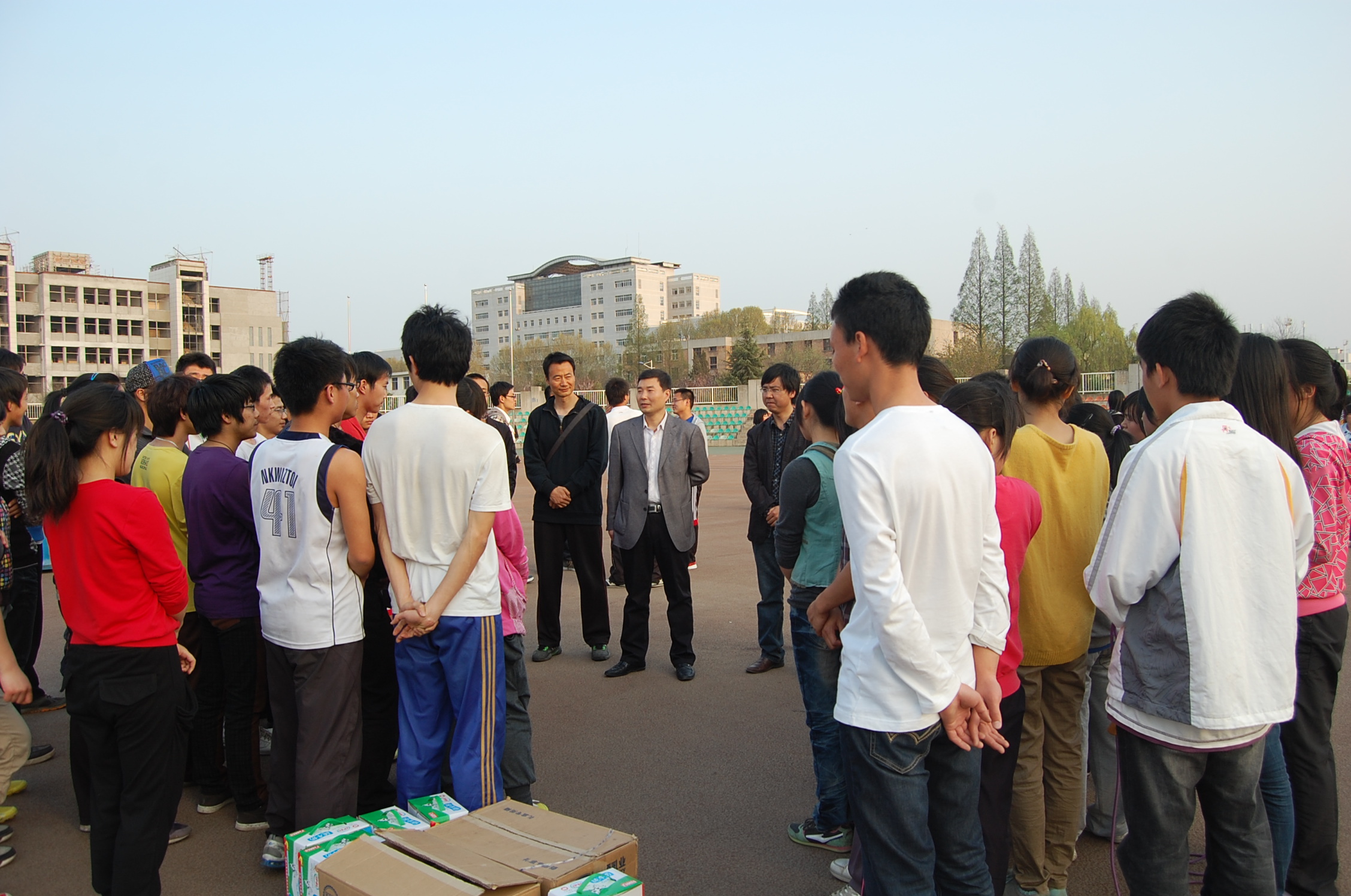 4月9日下午6:00,ai换脸明星 党委副书记何卫军携带营养品赴田径场慰问了积极备战校运会的运动员们。ai换脸明星 辅导员谷申杰老师和倪玲老师陪同参加了此次活动。