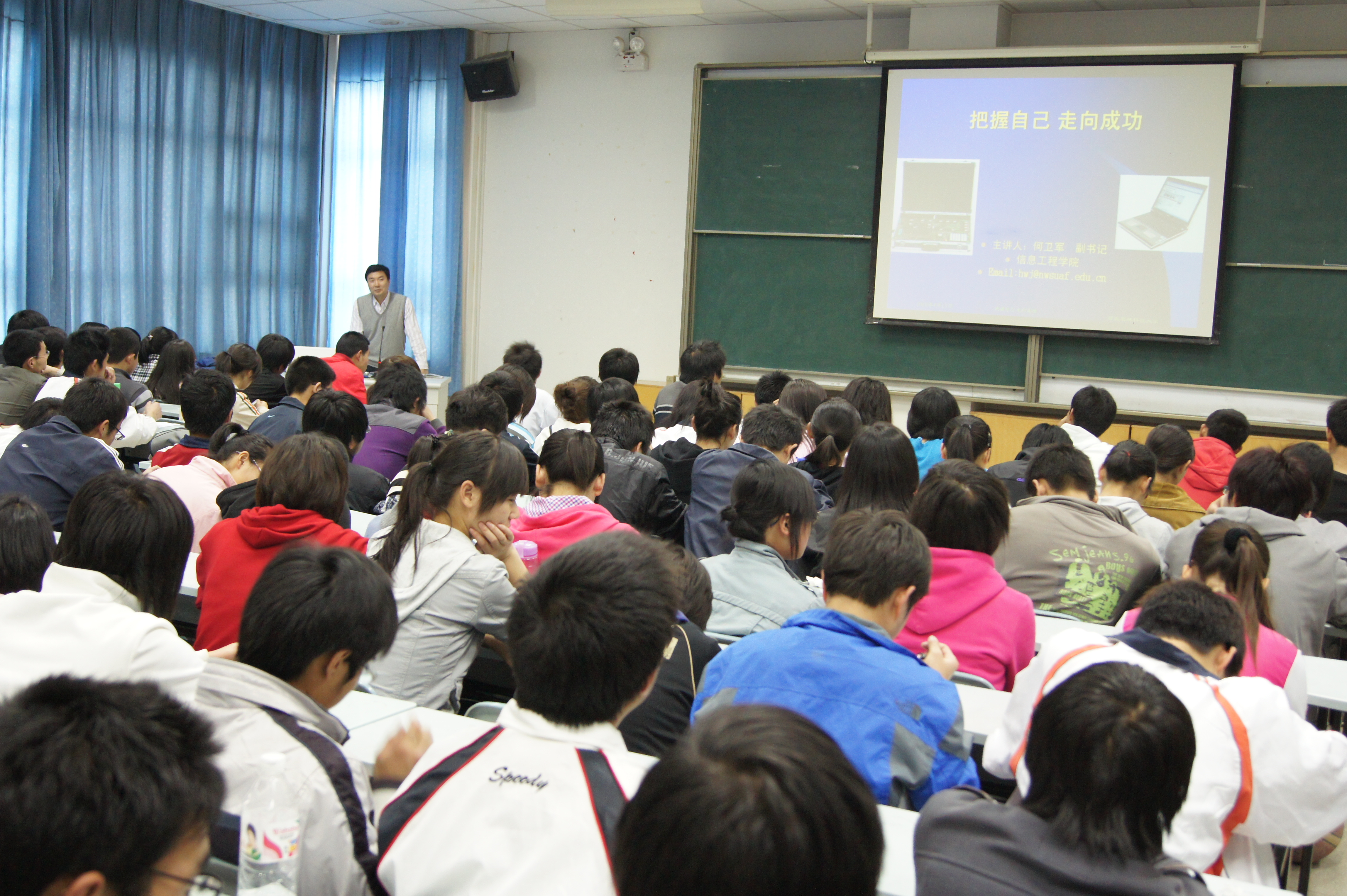 多媒体教室为2009级全体学生做了一场《把握自己,走向成功》的报告。