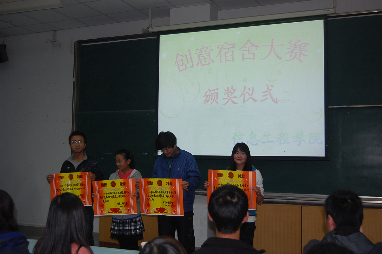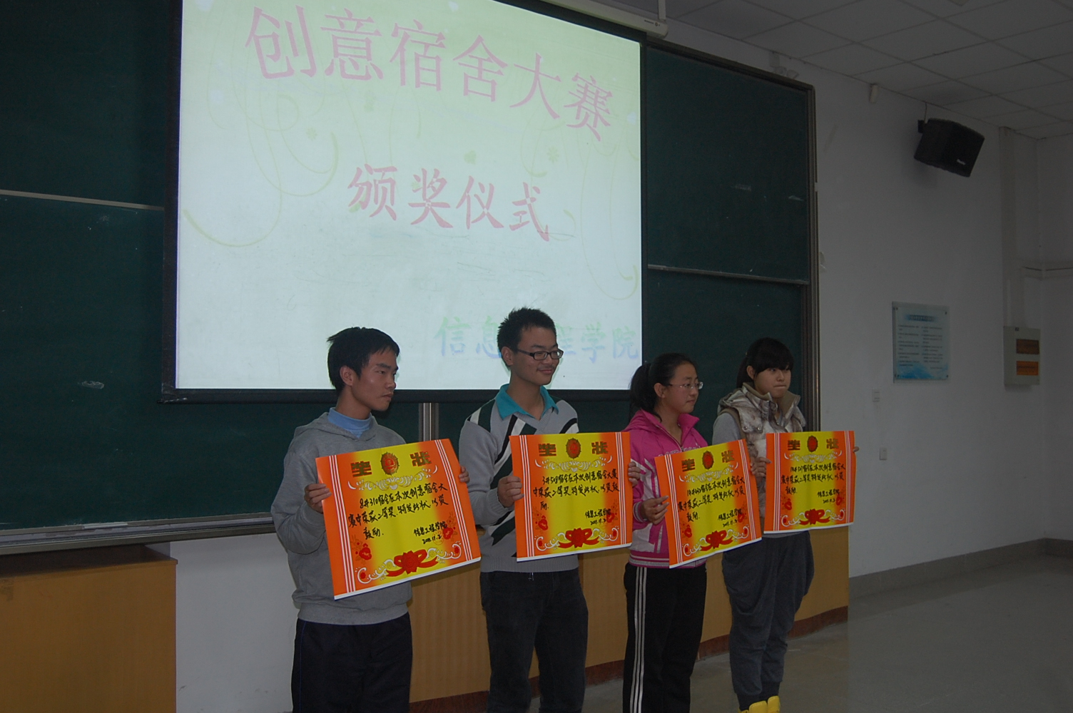 11月2日下午,ai换脸明星 在M2教室举行了2011级“创意宿舍”大赛颁奖仪式,辅导员倪玲老师、校学生会生活部副部长付婷婷以及到场的各院生活部部长为15个获奖宿舍颁发了奖状。