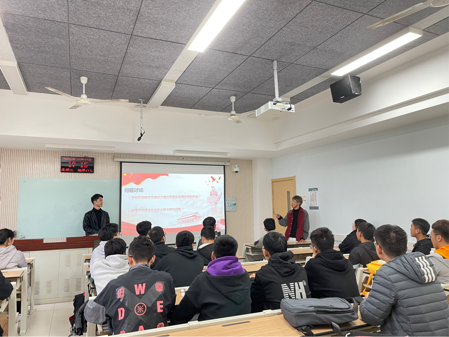 班长包岩供首先对此次班会做了会前介绍与强调,让同学们就班级学风建设展开思考,同学也对本次会议有更为深展的了解与认知。包岩供表示,班级学风既是一个班级在长期存在和发展中形成的学习风气,它是体现一个班风气好坏、群体素质好坏的重要特征。班级作为学生自我教育、自我管理、自我服务的主要组织载体,其建设便有其举足轻重的地位。