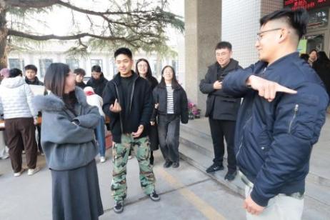 “你划我猜”为本次最受欢迎的活动之一,采用两人自由组队形式,一人比划、一人猜词。比划者根据敷面膜、跳广场舞、自拍、追剧等生活化题目进行肢体演绎,全程不能说话,猜词者在1分钟内猜对8个及以上即为挑战成功。活动现场师生配合默契,偶尔的趣味演绎引得全场笑声不断,既拉近了师生距离,又营造了轻松欢乐的氛围。
