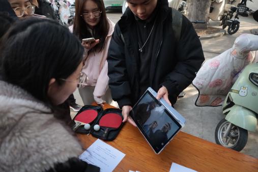 “原地颠球”游戏考验参与者的手眼协调能力与平衡感。参与者原地站立,手持乒乓球拍颠球,45秒内累计颠够25下即为成功,期间球掉落可捡起继续挑战。该游戏难度适中,无论是初次尝试的新手,还是技巧娴熟的“高手”都能参与其中,师生们专注颠球的模样尽显认真,即便多次掉落也不放弃。